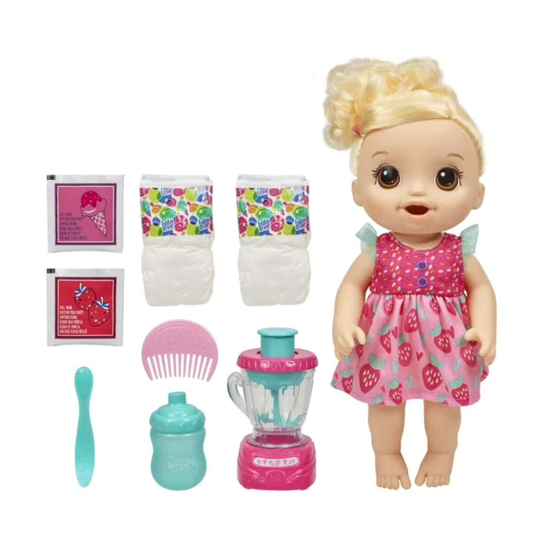 Licuadora funcional: Incluye una licuadora de juguete para preparar batidos de fresa de juguete mezclando comida rosa en polvo para muñecas con agua.