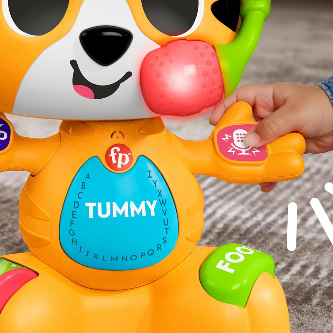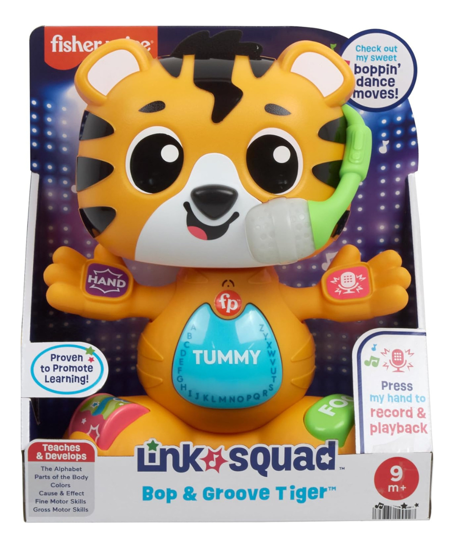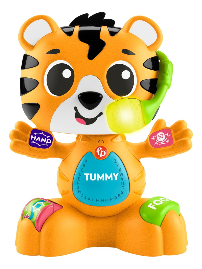 Juguete de tigre interactivo, de aprendizaje con más de 50 divertidas canciones, sonidos y frases que introducen partes del cuerpo, el alfabeto y los colores.