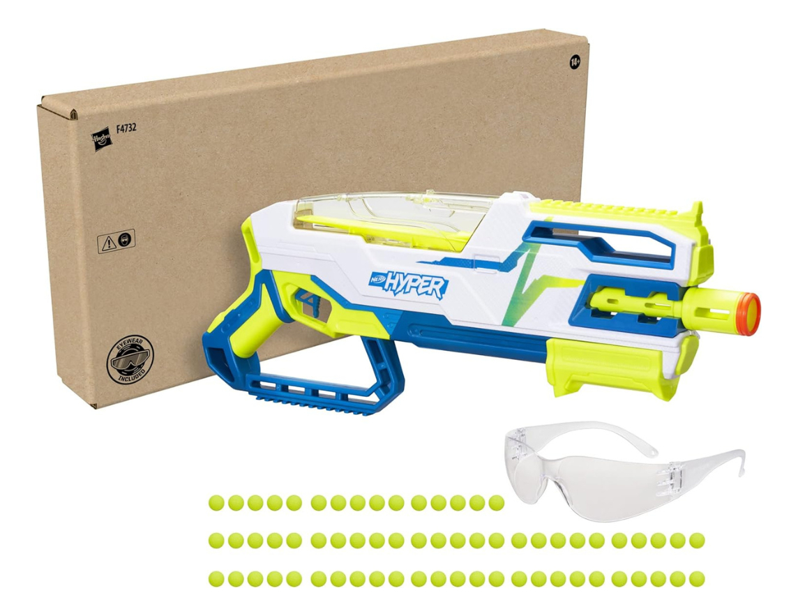 NERF Paquete exclusivo de Amazon Hyper Blaster: incluye pistola Nerf Hyper Siege-50, 65 rondas oficiales Nerf Hyper – 25 rondas más que el lanzador original – y diseño de color exclusivo de Amazon