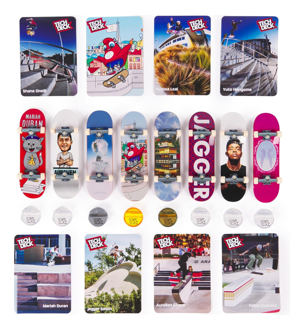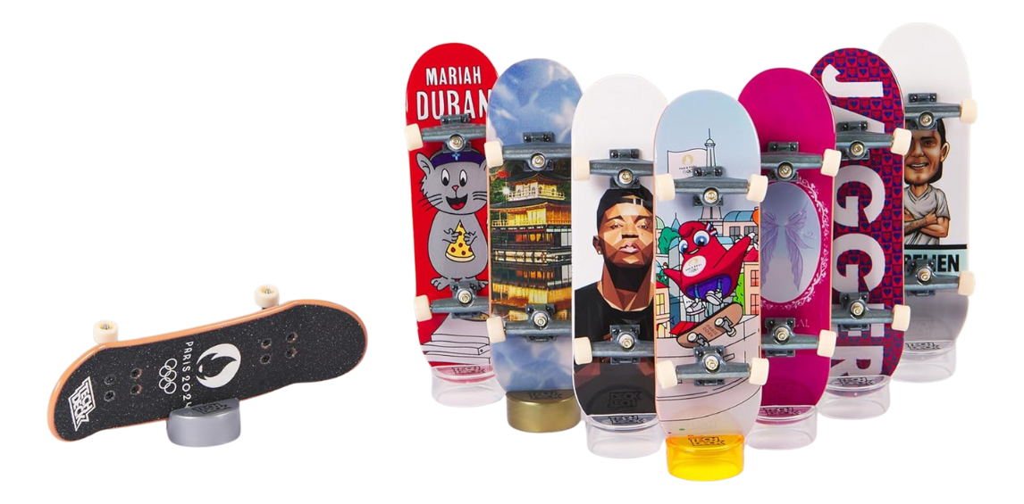 ¡Desliza, da volteretas y grindea con una tabla de fingerboard oficial con lija especial para conmemorar París 2024! Desde la lija hasta los bushings, estas tablas han sido recreadas con todo lujo de detalles.
